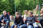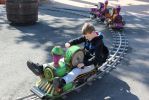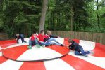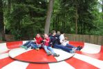 Als große Gruppe sind wir zuerst in die Rollende Tonne oder auch Hamsterrad genannt, auf das Teufelsrad, zum Wellenflieger und zur Dinohochbahn.