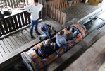 Die Wildwasserbahn sind wir alle ganz oft zusammen gefahren. Eigentlich passen dort nur drei Leute rein, aber wir haben uns zu sechst rein gequetscht.